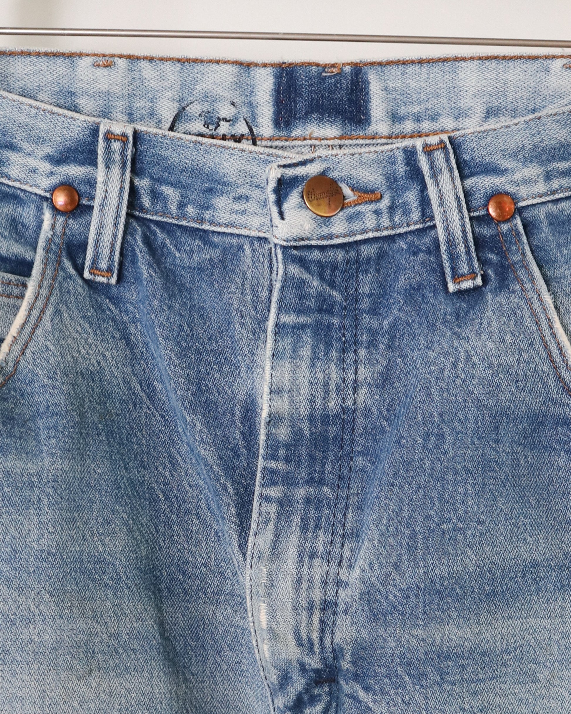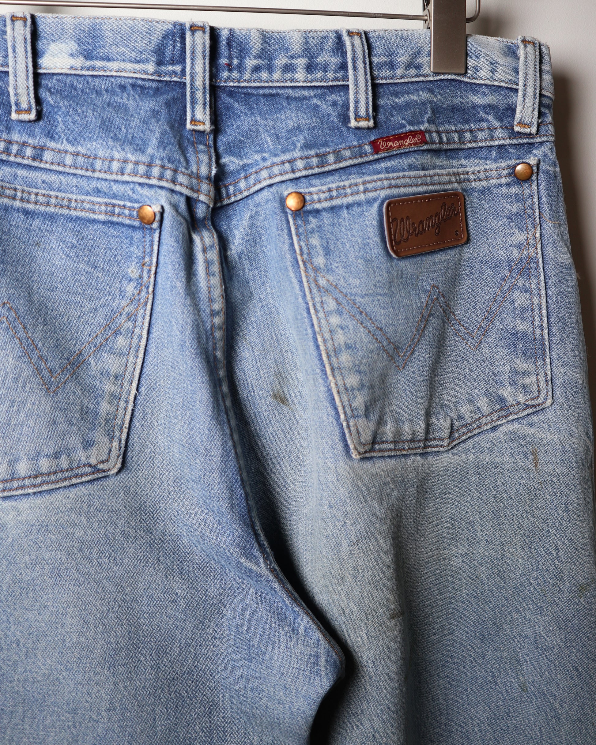 Wrangler has long been associated with durable, functional denim made for work and movement. While this pair is not considered vintage, it reflects the same utilitarian roots that define the brand. The wear seen here is the result of real use rather than artificial distressing, giving the jeans an honest, broken-in character that aligns naturally with the HOLLY Studio ethos.